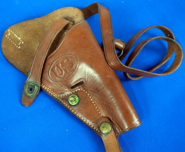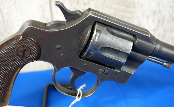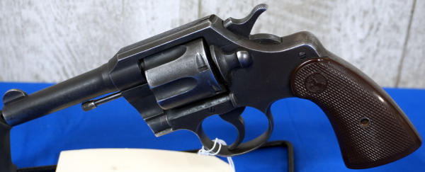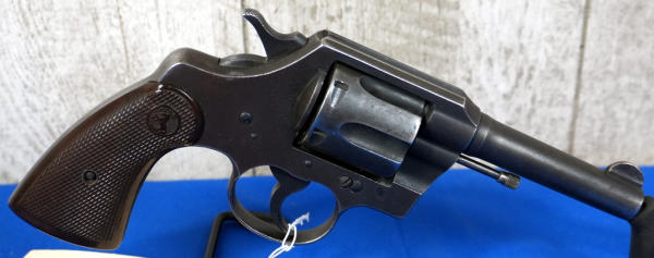 4" BBL: gray Parkerizing, GHD marked. Brown Boyt US marked shoulder holster; plastic checkered colt grips; 6-shot swing out cylinder; USA; SN#39105; A-192