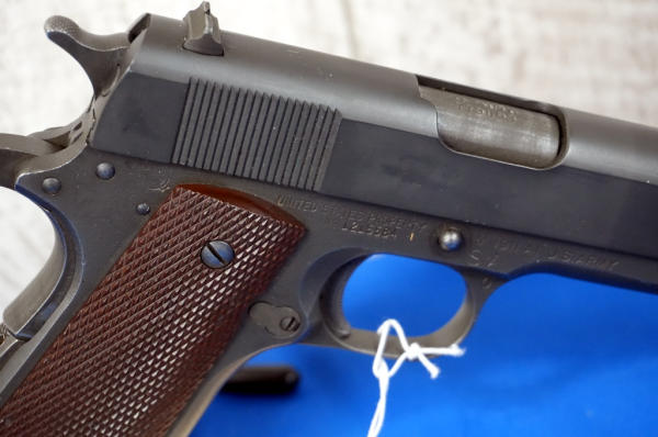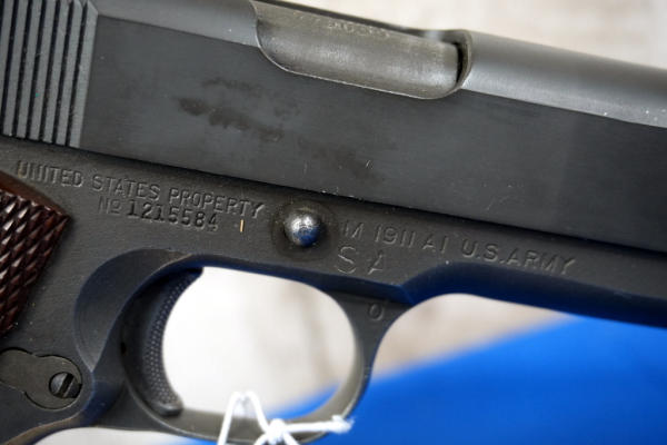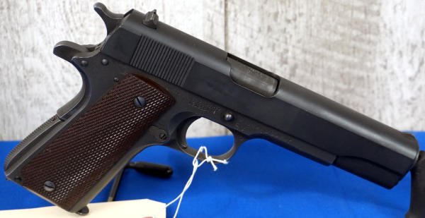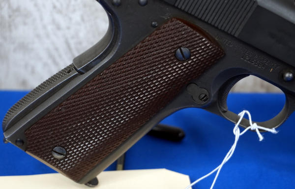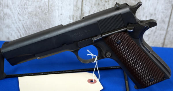 5" BBL; plastic brown checkered grips; C-R Toe Marked Magazine; fixed sights; parkerized finish; US Property Marked; overall very nice; USA: SN#1215584; A-192