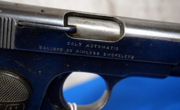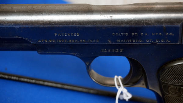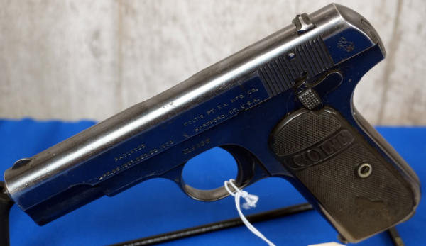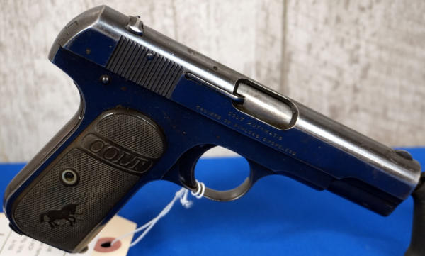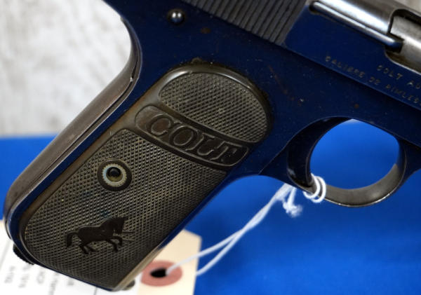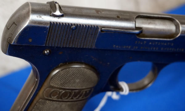 3.75" BBL; Dates to 1916, 1 all-blued Colt magazine; plastic Colt checkered grips; fixed sights; has some bluing loss & scratches from use; USA; SN#319236; A-192