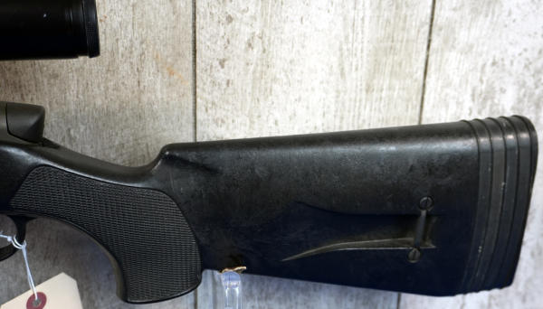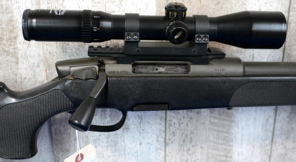 26" Heavy Hammer-forged barrel. Fiberglass adj. buttpad; Schmidt & Bender 1.5 to 6x scope. Includes 1 magazine; black synthetic stock; smooth action; nice & clean; Austria; SN#194031; A-192