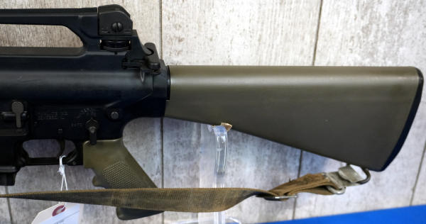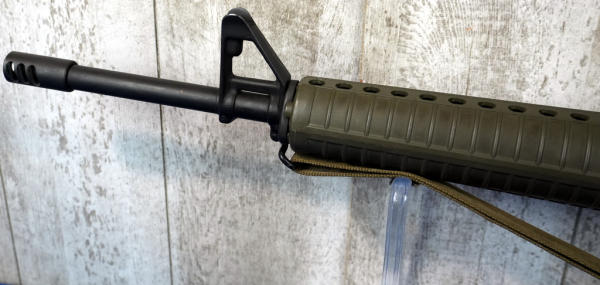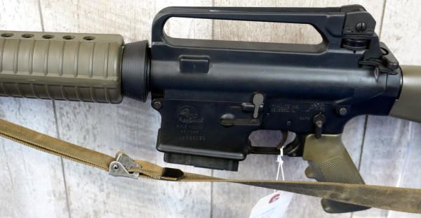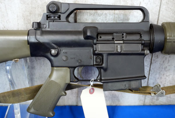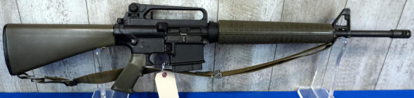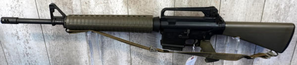 DoD stamp on mag well. green stocks, 20" BBL w/2" flash hider; sling, 10 rnd. Magazine; carry handle top; nice condition; USA; SN#US563190; A-192