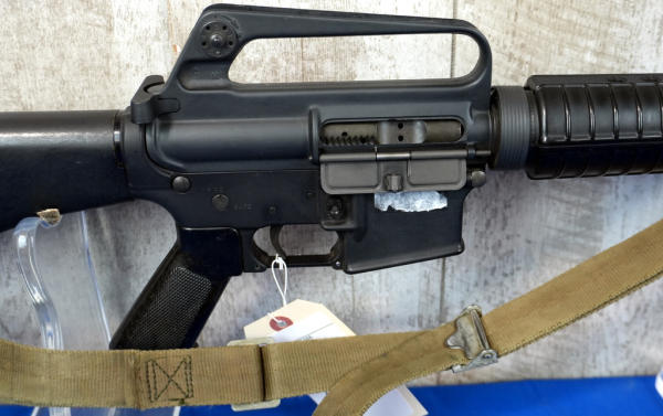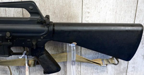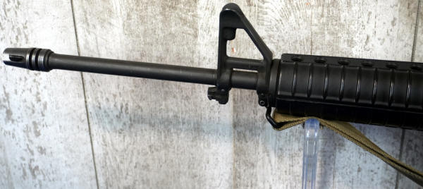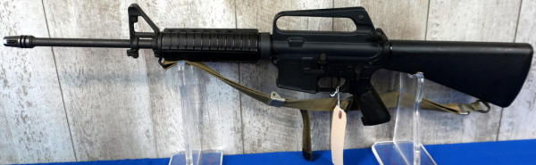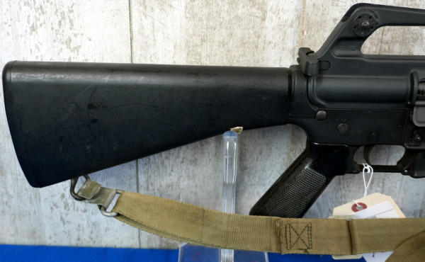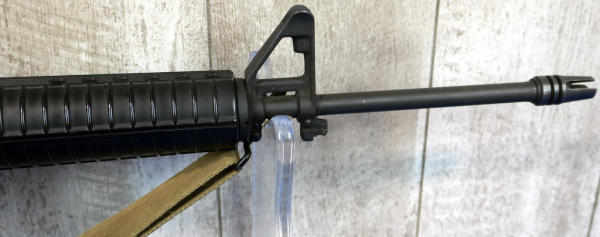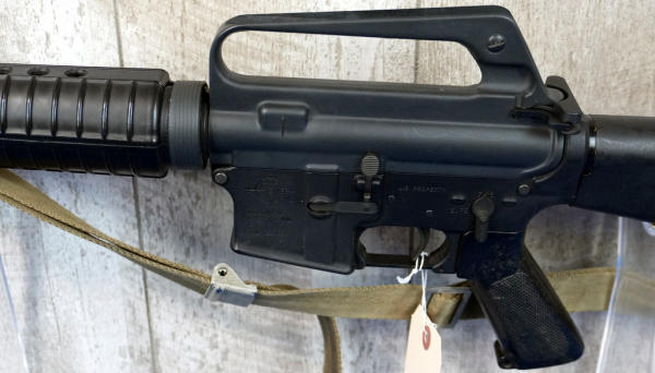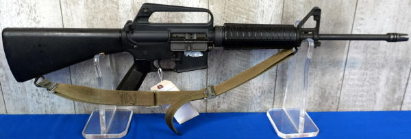 US Prop marked. 16" BBL. w/3-Prong 1" flash hider; M16 slick-side upper with M4 style handguard. All black furniture. Nylon sling; NO magazine; carry handle; USA; SN#CM29468; A-192
