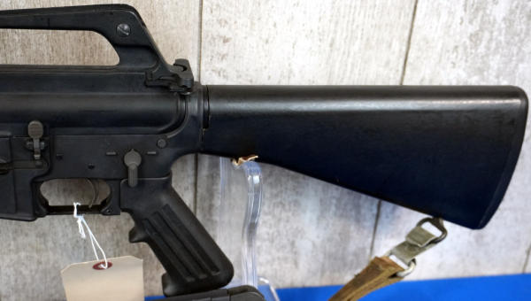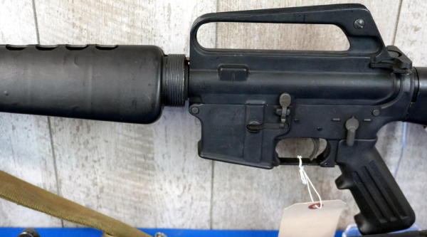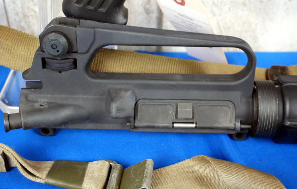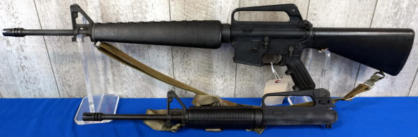 Two uppers: M16A1 style with triangular handguards & 3-prong flash-hider plus M16A3 style with round handguard and birdcage flash hider. Nylon slings. All black furniture; plastic hard case; NO Magazine; buying the whole family for one money; USA; SN#CM03208; A-192