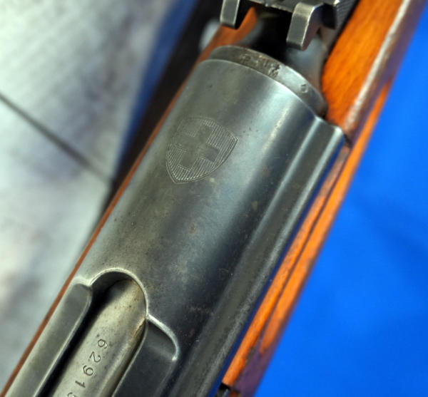 Not from Yuly Estate; 26" BBL; very good bore; mfg. 1940; can use GP11 ammo; removable magazine; leather sling; solid wood w/normal wear from use; Switzerland; SN#629154; A-220