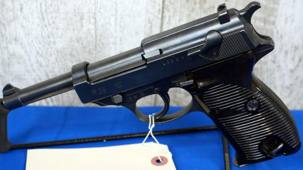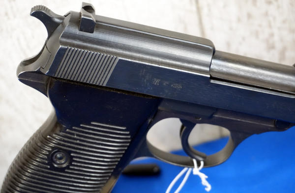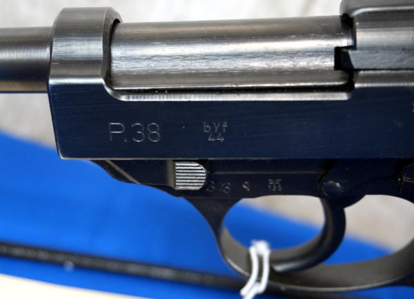 5" BBL; byf44 marked slide, all visible numbers match, black grips, period blued P38 Waa359 marked magazine with toe; overall nice condition; Germany; SN#2833q; A-192