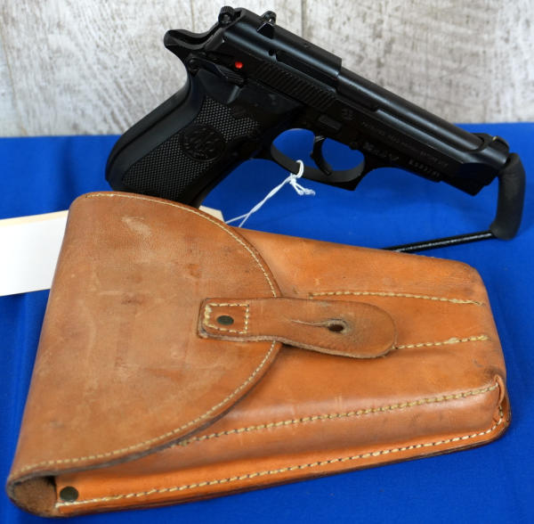 3.75" BBL; black plastic grips, 2 mags, Czech leather holster; overall like new condition; import marked; night sights w/single line rear; Italy; SN#E59378Y; A-192