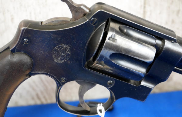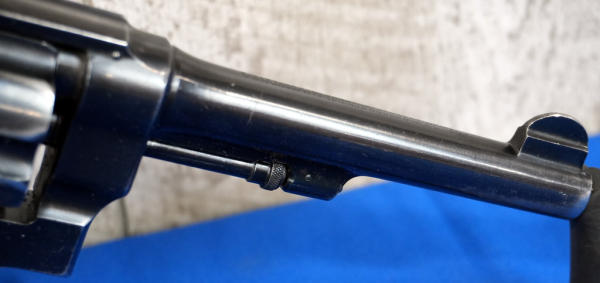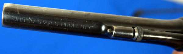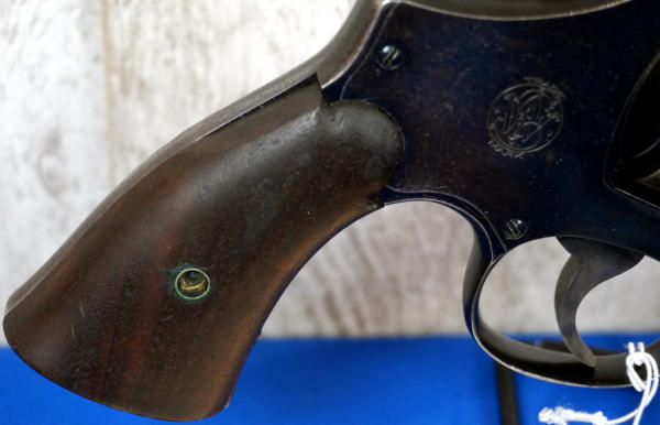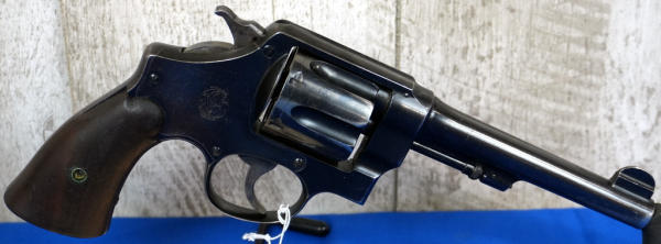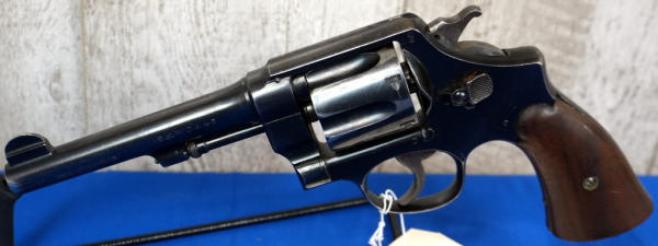 5.5" BBL; US Property, decent bluing; frame bottom ID matches SN; smooth wood grips; 6-shot swing out cylinder; USA; SN#142801; A-192