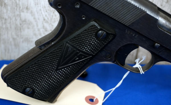 4-5/8" Stainless Barrel; 2-lever. Waa A526 & Waa77 marked slide. Blued. black plastic grips, 1 period unmarked mag; Germany; SN#D2841; A-192