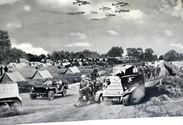 depicts soldiers, military vehicles, African American children eating watermelon; white plantation owners and more; great look and detail; shrink wrapped to cardboard; 42"x9.5";