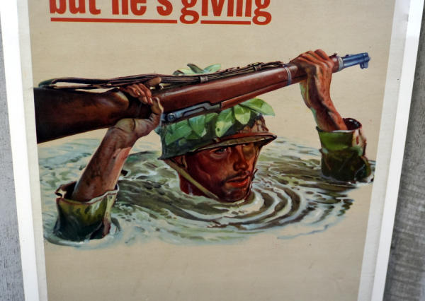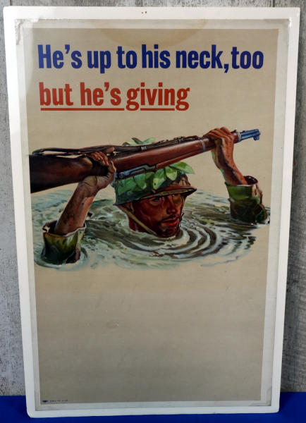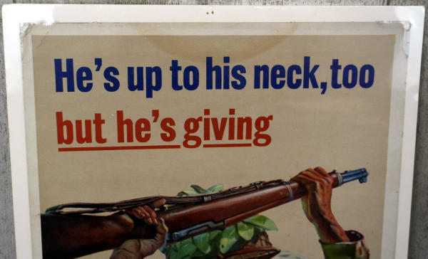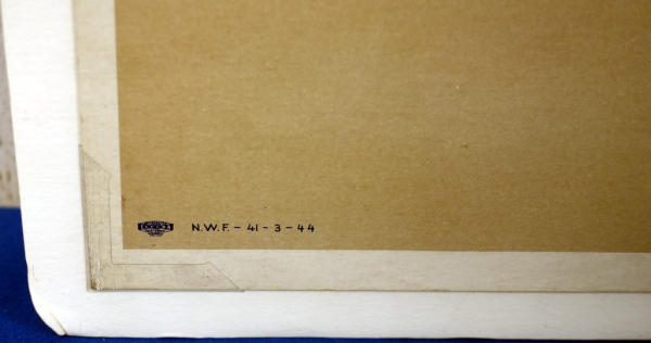 this is heavier cardstock; shrink wrapped to foam board; nice color; dated 1944; print is 22"x14"; does have some minor water staining on top