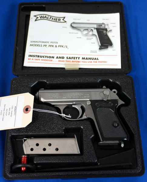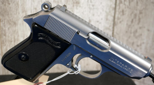 Not from Yuly Estate; 3.25" Stainless barrel; near mint and hardly fired; two magazines; black plastic checkered grips; factory hard case; marked Interarms on right side of slide; USA: SN#A084771; A-233