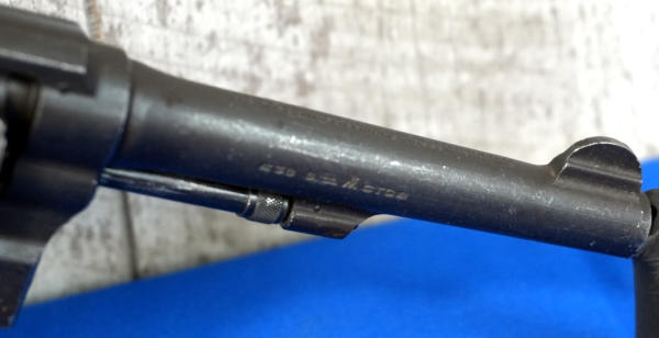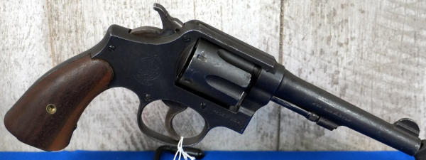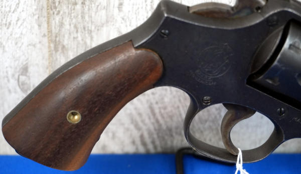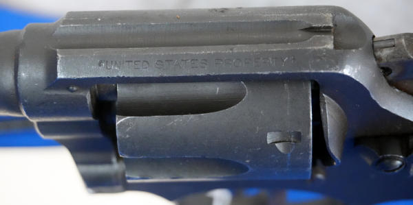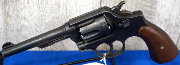 5" BBL: United States Property, Parkerized; smooth wood grips; 6-shot swing out cylinder; finish has some scratches; USA; SN#V93811; A-192
