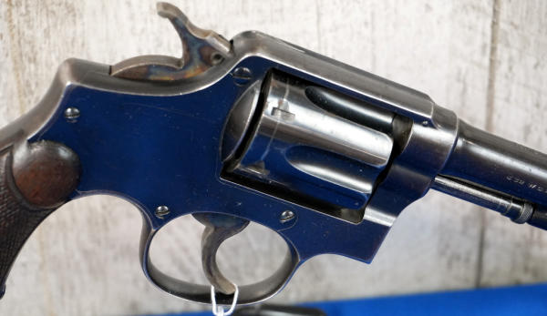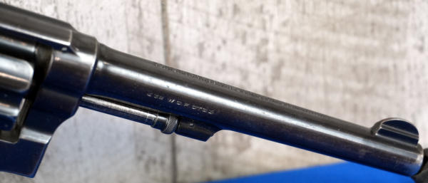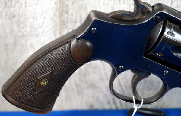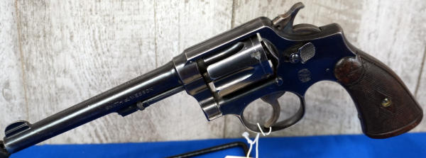 6" BBL; fixed sights; wood diamond checkered grips; 6-shot swing out cylinder; USA: SN#100938; A-192
