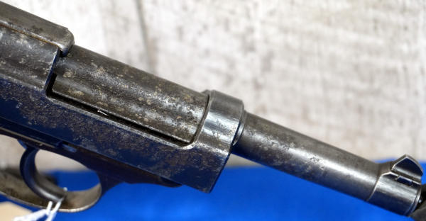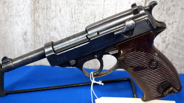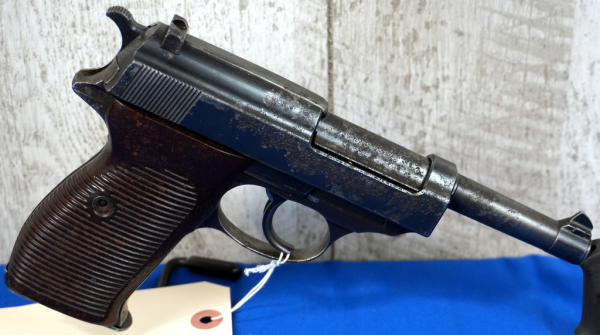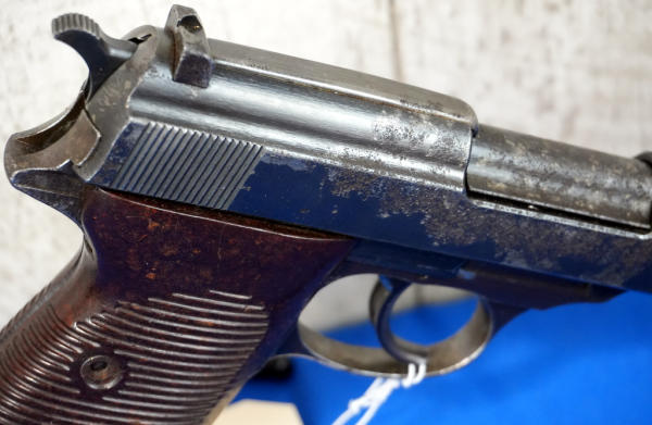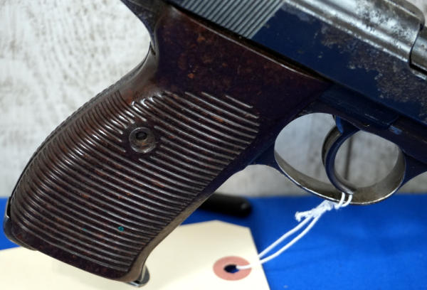 5" BBL; ac44 marked slide, brown grips, plain blue magazine. Heavy barrel and slide pitting; fixed sights; WaA marked; Germany ;SN#292i; A-192
