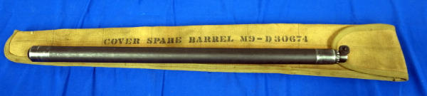 BBL is 24" long; marked w/a marker "30-06"; canvas case marked "Cover Spare Barrel M9-D30674";