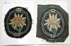 has some discoloration around the edges; stitched inside; 2-1/8" x 1-5/8"