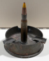made of pressed paper/fiber; has some discoloration on the bottom; overall very nice condition considering what it's made of; 1.5" diameter