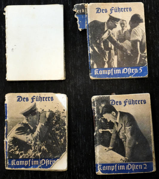 believe 3 of them are Struggle in the East #2,3 & 5; "The Fuhrer & His Builders" is missing the cover; all have some damage in some type but still nice collectible shape; all 2"x1.5"; sell 4x the money