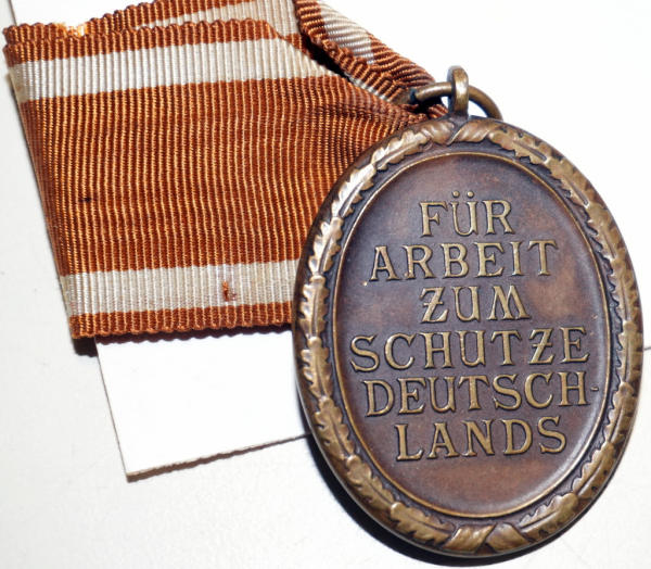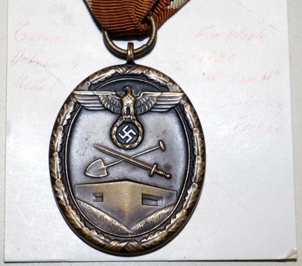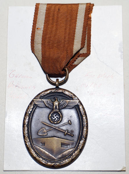 given for work on the "westwall" bordering France; medallion is 1.75" tall w/original ribbon