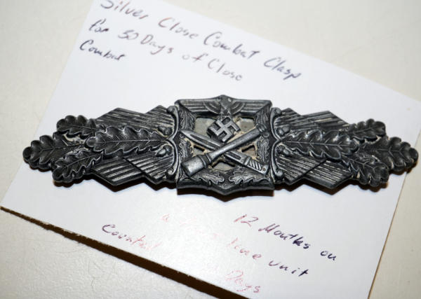 given by Hitler to soldiers for 30 days of close combat or 12 months on a front line unit; 4" long