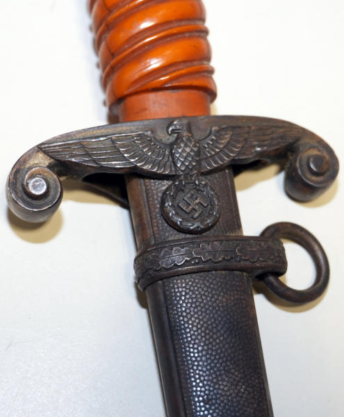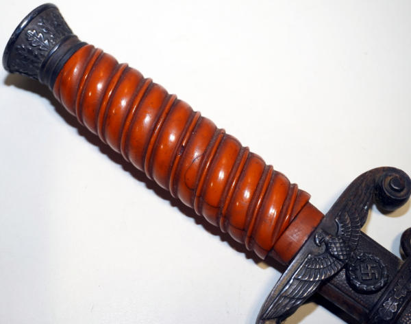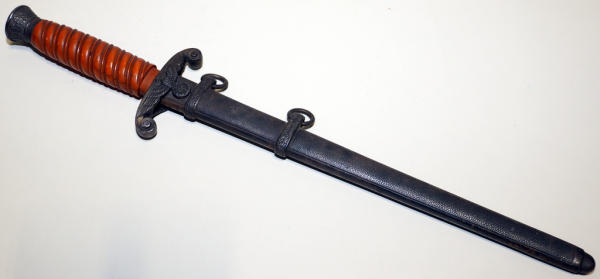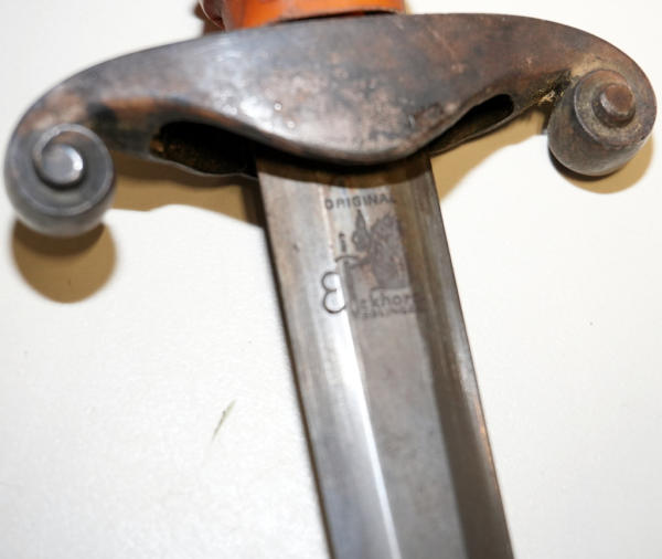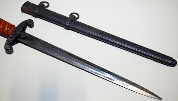 missing a band on the handle; has patina wear to meta; blade is 10" long; no hangers