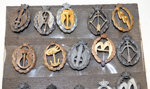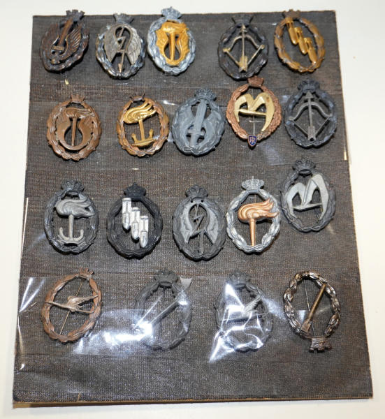 comes in a shadow box frame; crudely put on the board; would display nicely if you put in new frame or remounted them; pins are all about 2"x1.5"; sell for one money