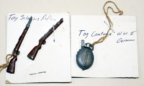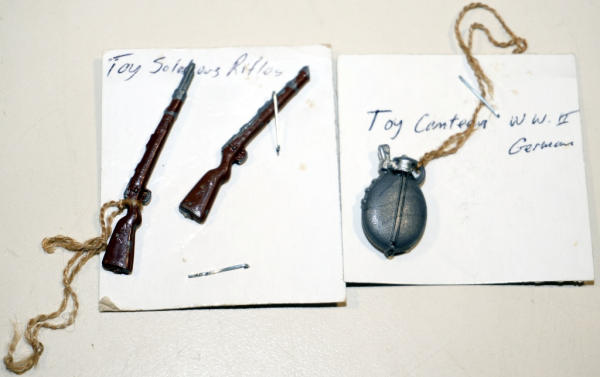 includes two rifles & a canteen; one rifle is missing the tip of the barrel; guns are about 2" long; sell 3x the money
