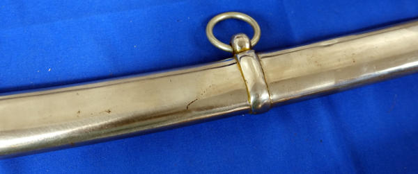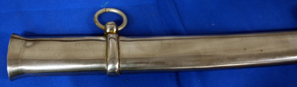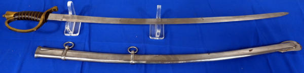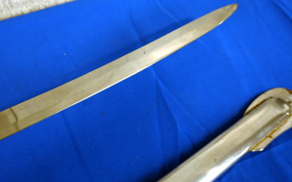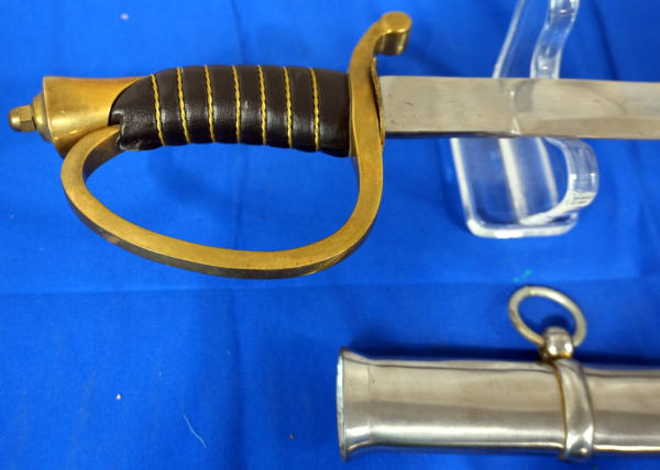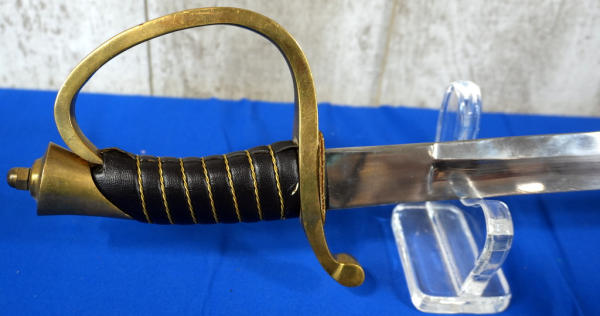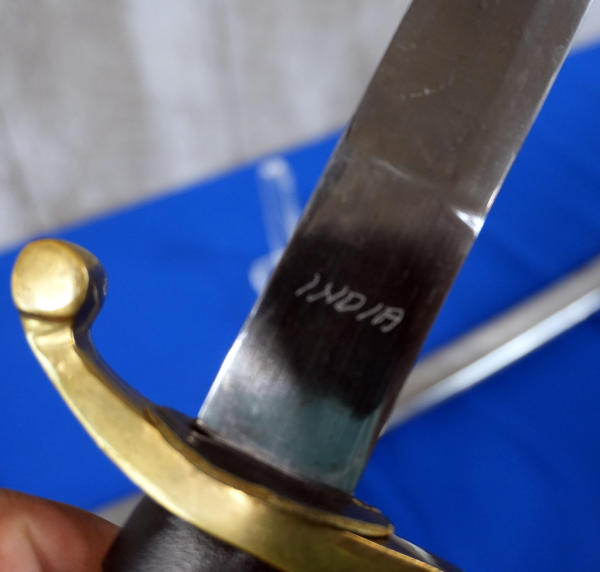 modern made; blade is not sharpened, dull; brass handle; total 39" long;