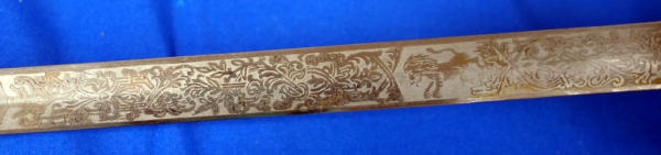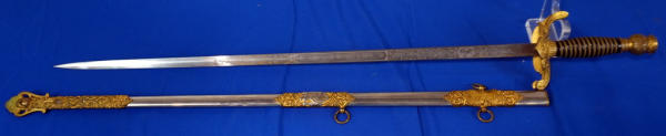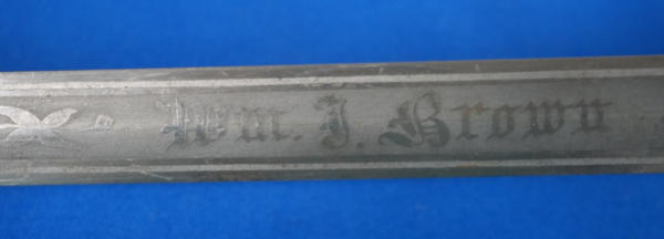 lots of detail; etched blade; has "Wm. J. Brown" & "Patriarch's Militant" on blade; 36" long in total;