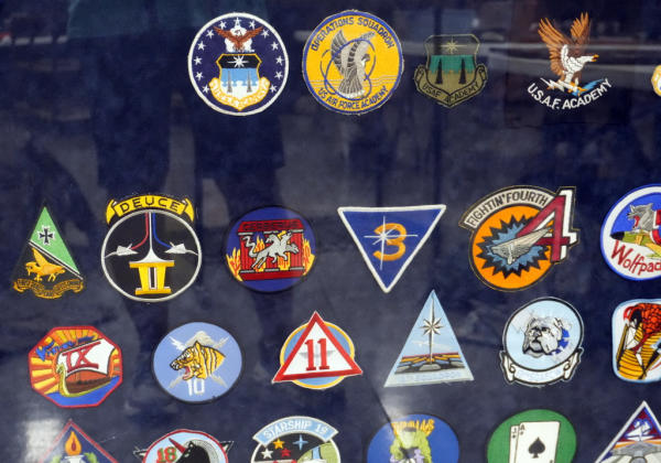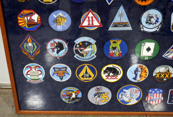 larger patches; most about 4.5" dia.; these are in very large frames, absolutely NO shipping of this frame (48"x38"); looks great!