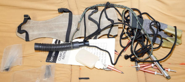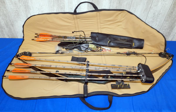 very nice condition; includes several arrows, soft carry case, tips, Quiver, glove, call & more;