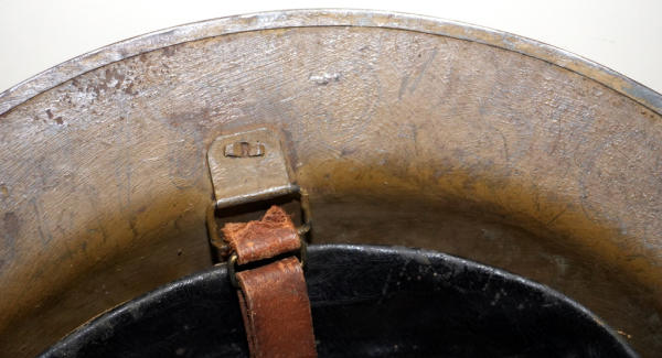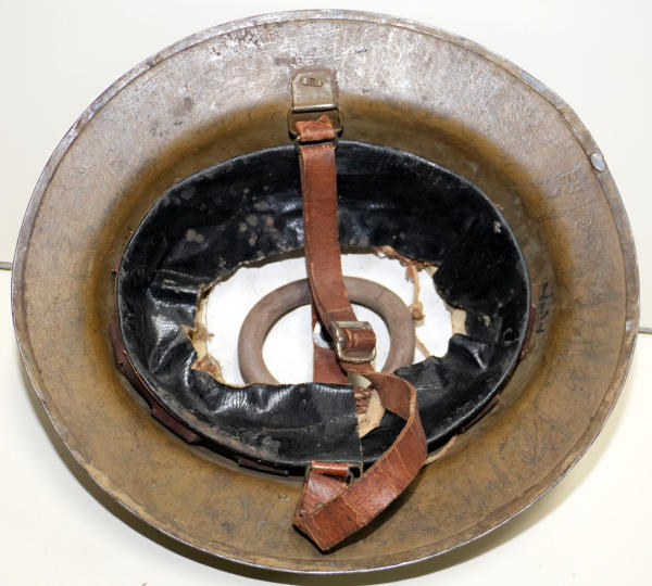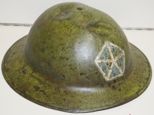 hand painted symbol on front; inside brim has soldiers name & info; Henry A. Barto.; believe a repaint