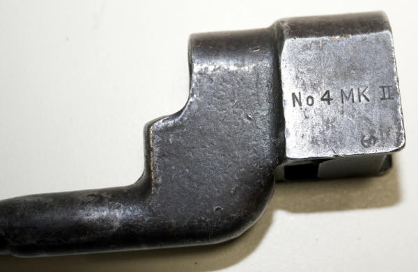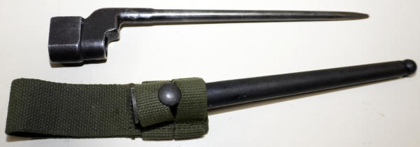 Longbranch made bayonet for No. 4 Mk 1 rifle. With metal sheath and canvass frog. C with broad arrow acceptance marked; 7.5" spike