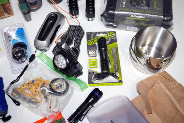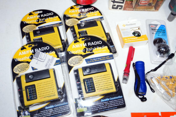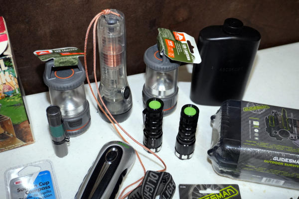 includes a full tote of flashlights, stoves, survival kit, canteens and much more; sell for one money