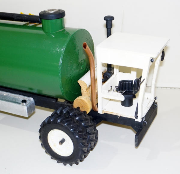 about 30" long, close to being 1/16th scale, a bit crude in spots, but still a unique build
