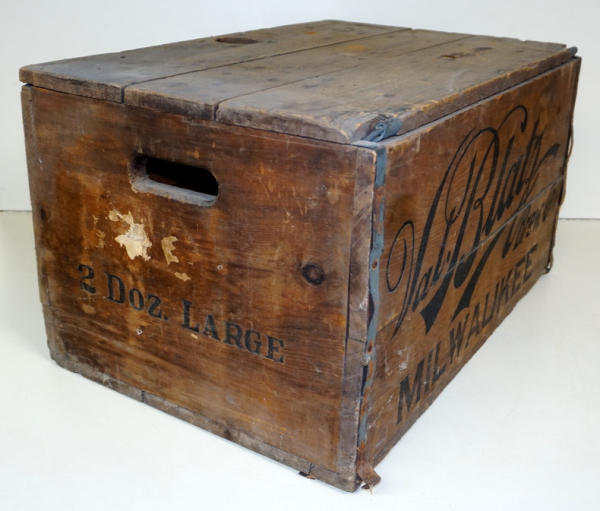 24"x14"x16", good lettering, on both sides, held 2-dozen Large bottles, good original