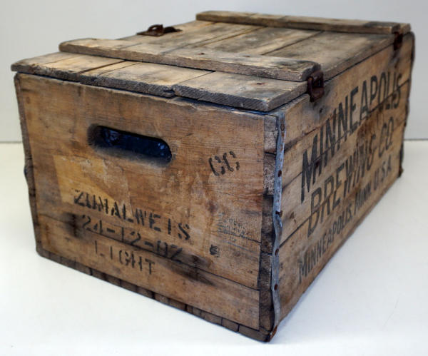 22"x10"x14", good lettering, one side is stenciled "Zumalweis Light 24 12oz", normal wear, but early