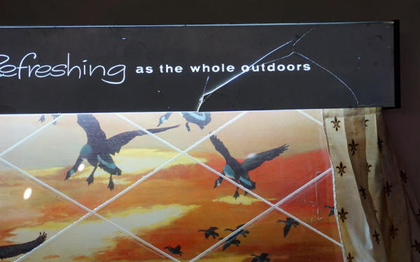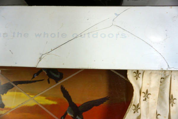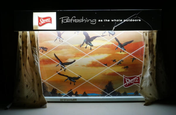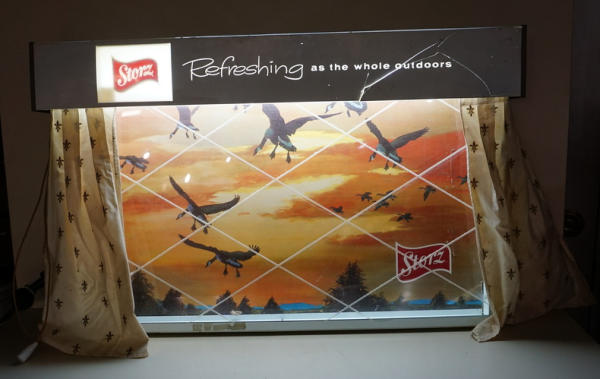 23"x36", works, original curtains, has a large crack in the top of the sign, see photo