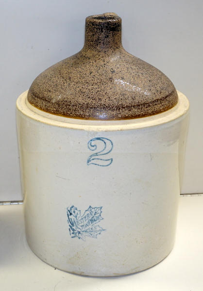 Jug has heavy loss to the dark brown glaze; jar has some chips and wear, sells 2x the money