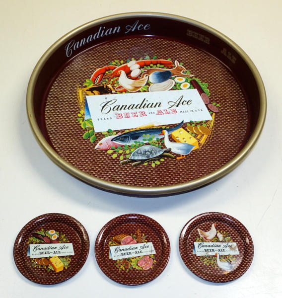 13" tray is nice with nice graphics, some light wear to the coasters, all to go