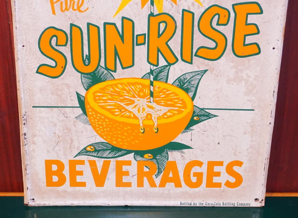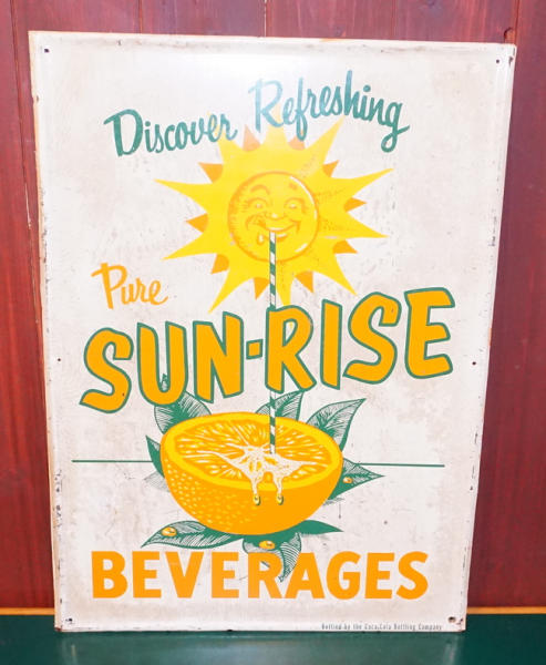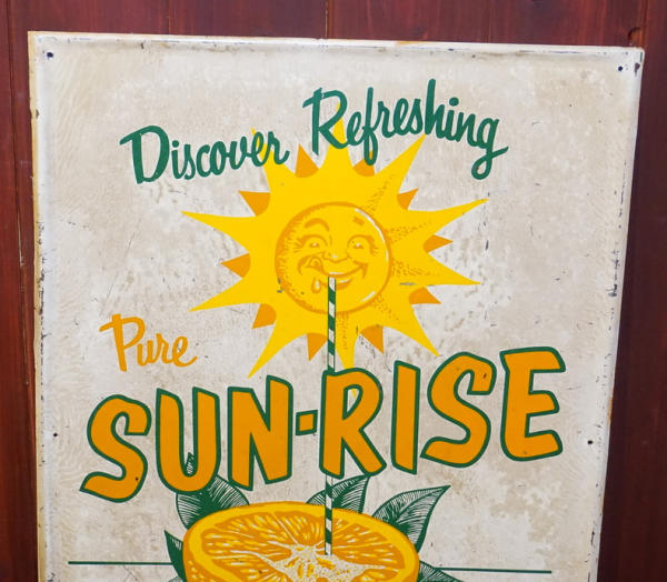 28"x20", old original, has heavy paper marks/discoloration, and some chips and wear, but a great old graphic sign