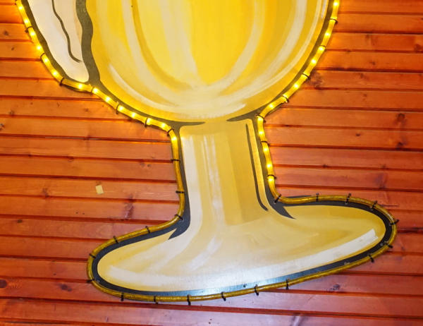approx. 5.5' tall, 48" wide, rope lights added to the boarder don't all work, buyer needs to bring ladder, tools and help to remove, no assistance will be provided