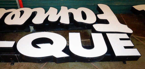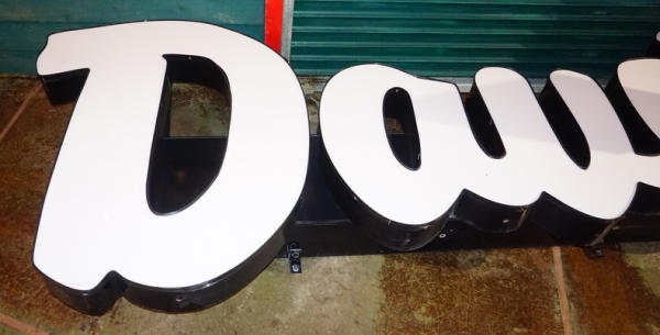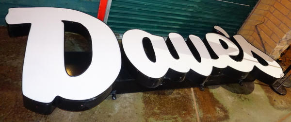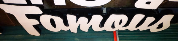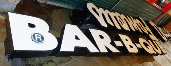 "FAMOUS" is 4' tall, 12' long, "Dave's" is 4' tall, 11' long, "BBQ" is 16.5' long, This sign was working when removed, it is laying on the ground inside and can be loaded during the normal load out, however, it is very heavy and going to require several strong guys to move, bring help, we do not provide loading assistance