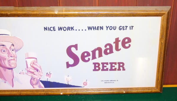 13"x30", from a Washington DC brewer, a little faded, I think this is an original sign, but hard to tell in the frame