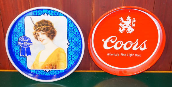 13" trays, both have wear, both have screw holes in them from being screwed to the wall