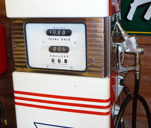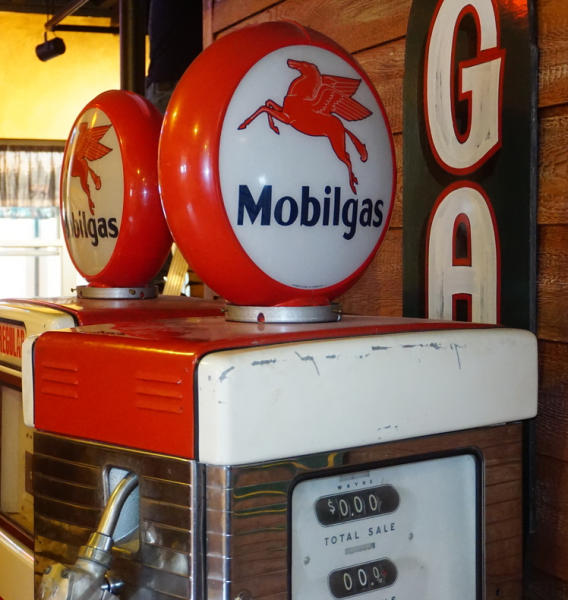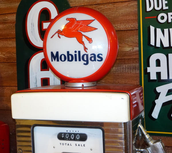 includes a reproduction globe, nice repaint and displays very well, lights up the globe, some scuffs and scratches from being displayed, but overall a nice old gas pump, feels like the guts have been removed; Pickup in Bismarck only, bring a cart and help with to load