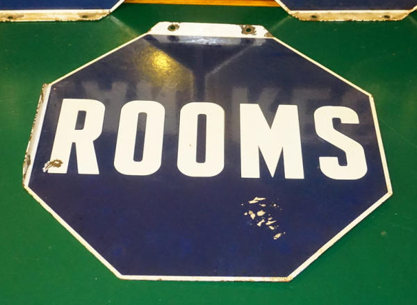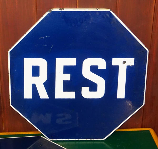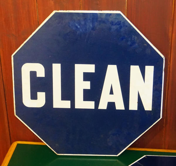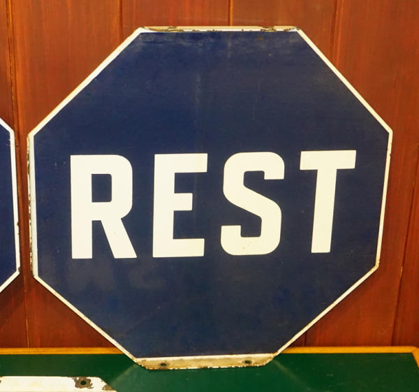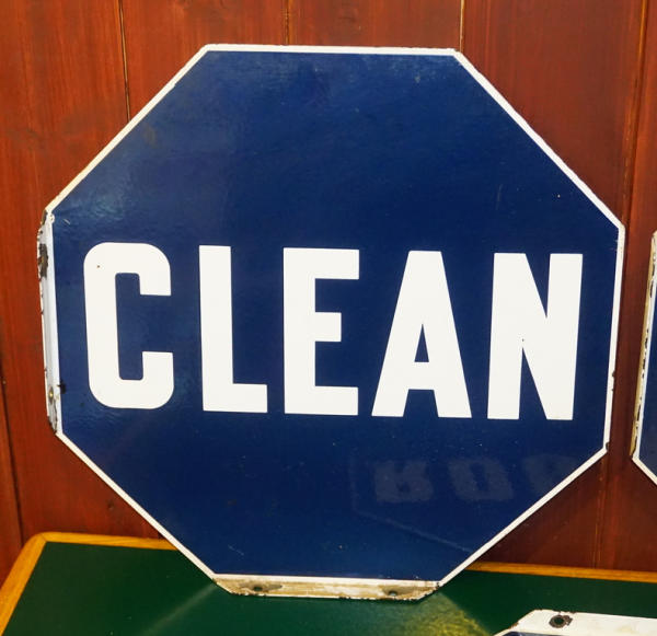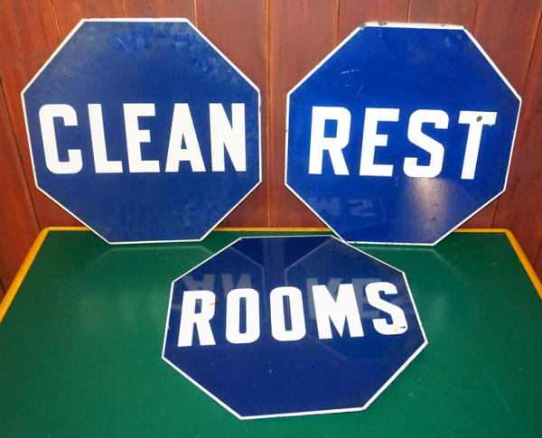 each sign is 18"x18", all good with some normal chips on the mounting flanges, nice set, all to go