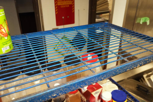 needs a good cleaning, very dirty; RACK ONLY, no product pictured goes with; shelves are 48"x21" and stands 6' tall; kitchen