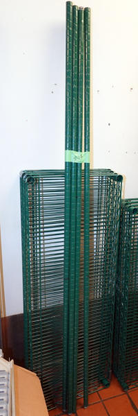 shelves are 48"x18" (4 of them) and poles are 74" long; kitchen