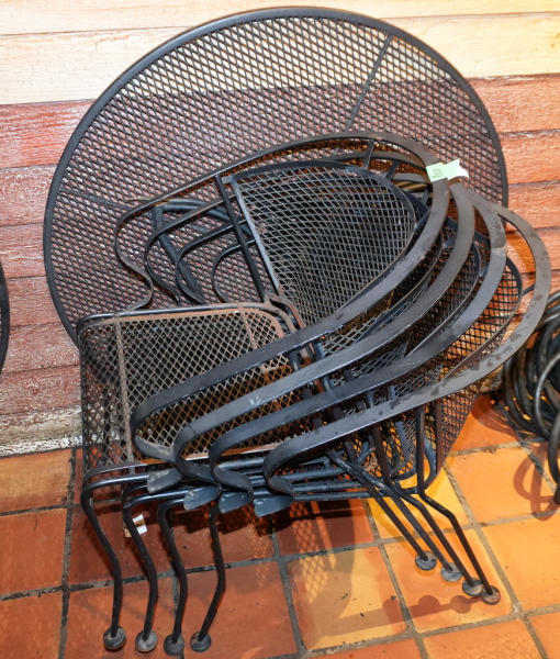 4-chairs, table top is 42" diameter; includes legs; chairs have some wear & paint loss; hallway